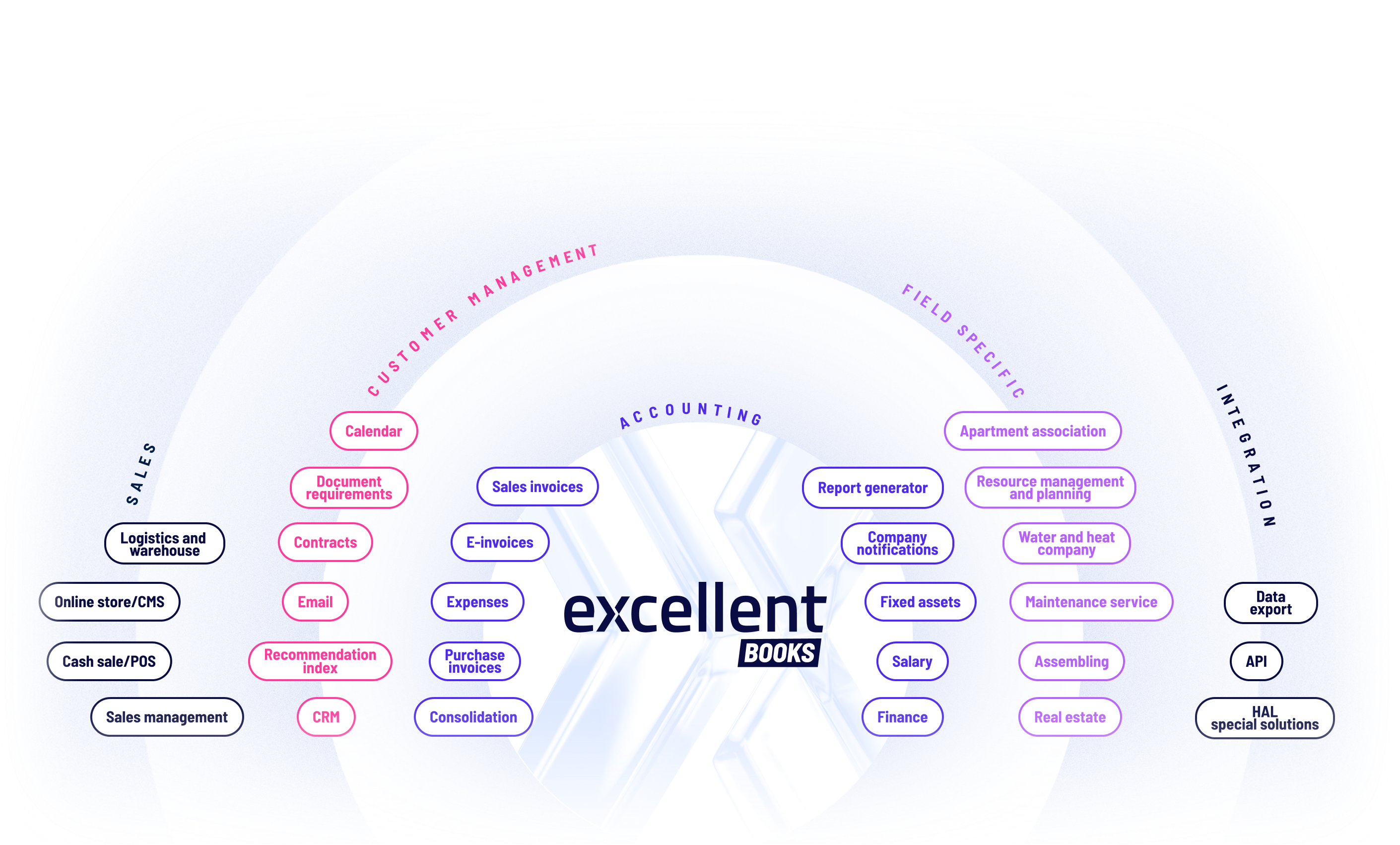 Excellent Books business software offers nearly 30 different options that support companies’ daily business activities. In addition, we have developed convenient custom solutions for companies engaged in maintenance services, real estate management, sales and warehouse management, water and heat companies, or accounting offices. Feel free to contact us if you need a custom solution to automate your company’s workflows!