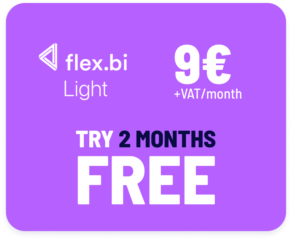 If you want more, the flex.bi main package allows to analyze all the financial data of your company. Price starting from 59 eur+VAT/month per company. For more information, please contact myyk@excellent.ee