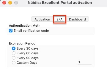 1.2. A window Excellent Portal Activation will open, containing three tabs: Activation, 2FA and Dashboard.