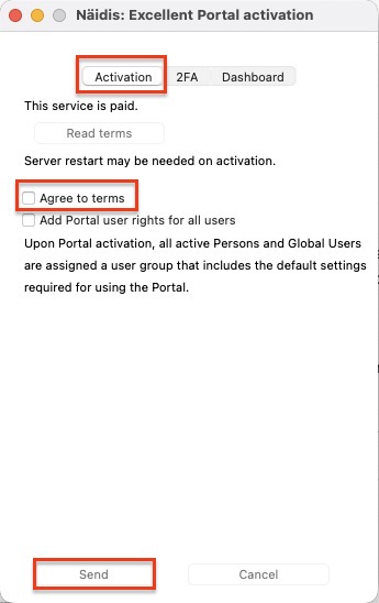 Activate Portal by selecting “I agree to the terms” and click “Send”