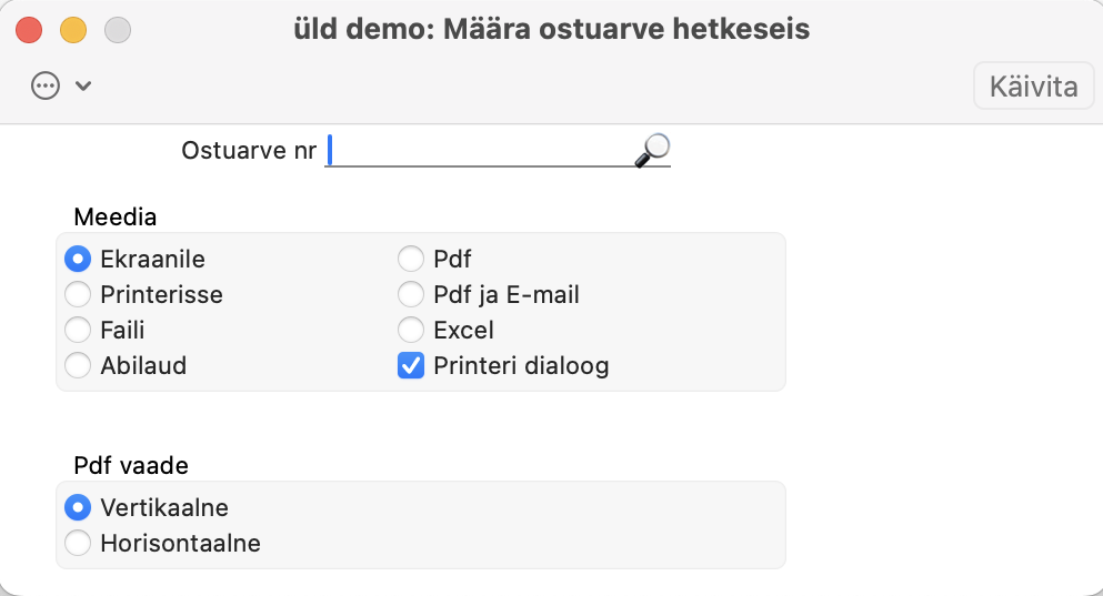Ostuarve nr – Määrake ostuarve number, mille üksikasju aruandes näidatakse. Peate määrama ühe arve numbri, et aruanne avaneks.