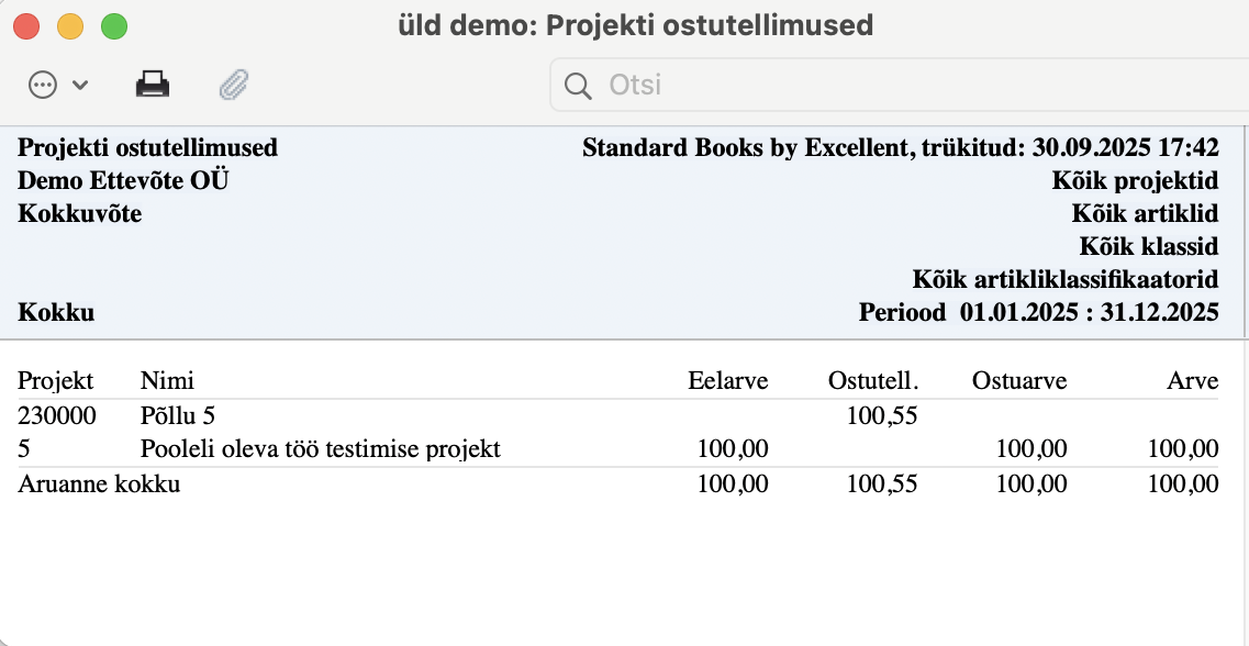 Ostuarvete summad võetakse Projektikannetelt, mis on loodud Ostuarvetest selle perioodi jooksul.