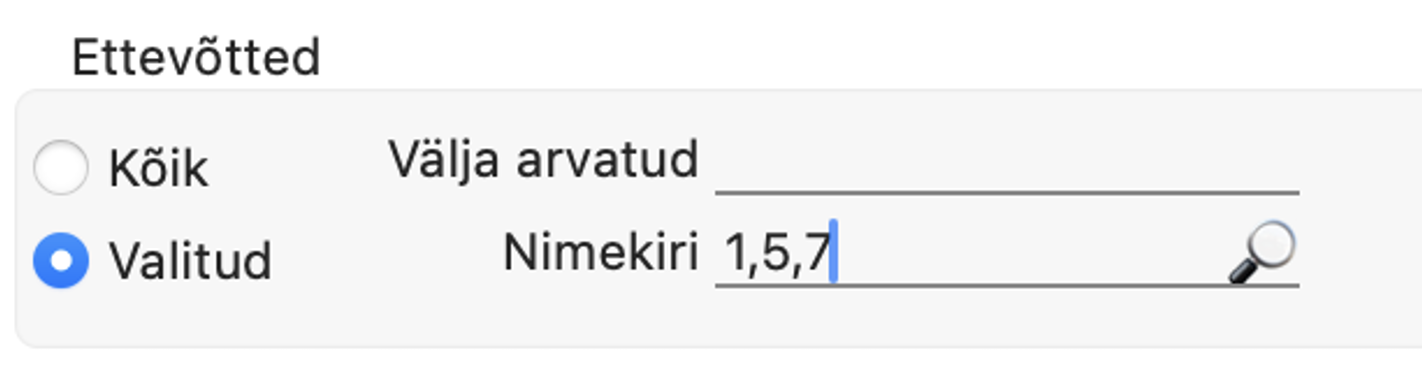 - Välja arvatud – Sellele väljale saab valida komaga eraldades ettevõtted, mis soovitakse välistada.