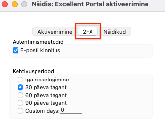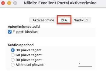 2FA seadistusi saad vajadusel muuta ka Excellent Portali veebikeskkonnas pärast Portali aktiveerimist, kui kasutajal on administraatori lehe õigused.