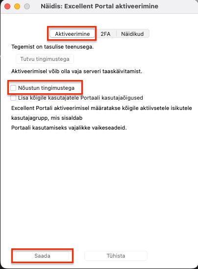 Aktiveerimiseks märgi valik “Nõustun tingimustega” ja vajuta nupule “Saada”