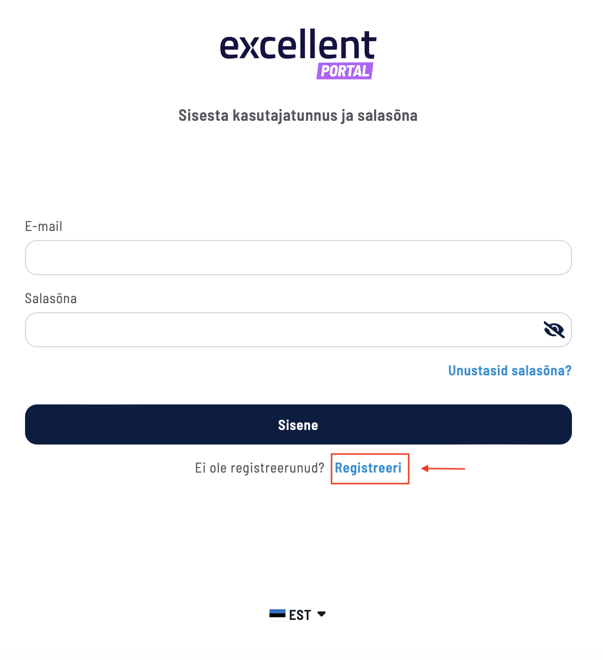 See on e-maili aadress, mida kasutaja peab kasutama Excellent Portali sisselogimiseks