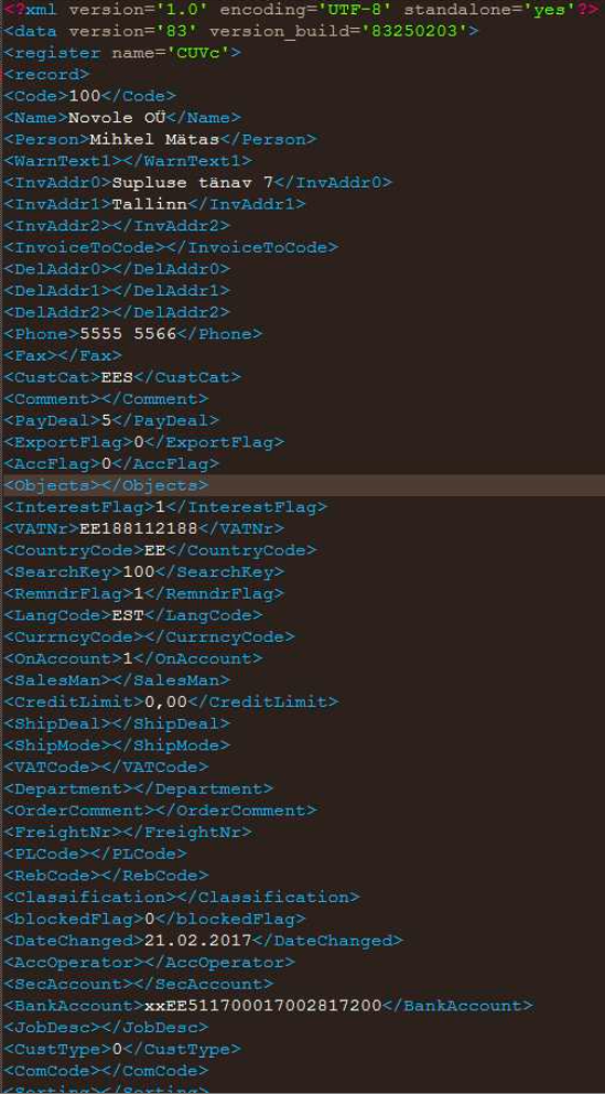 Näide XML formaadis GET päringu tulemusest (Kontakti andmed):