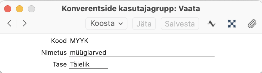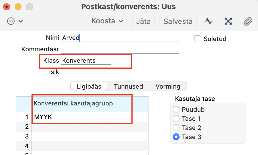 „Konverentsi kasutajagrupp“ – vali siia 1. punktis loodud kasutajagrupp. Salvesta kaart.