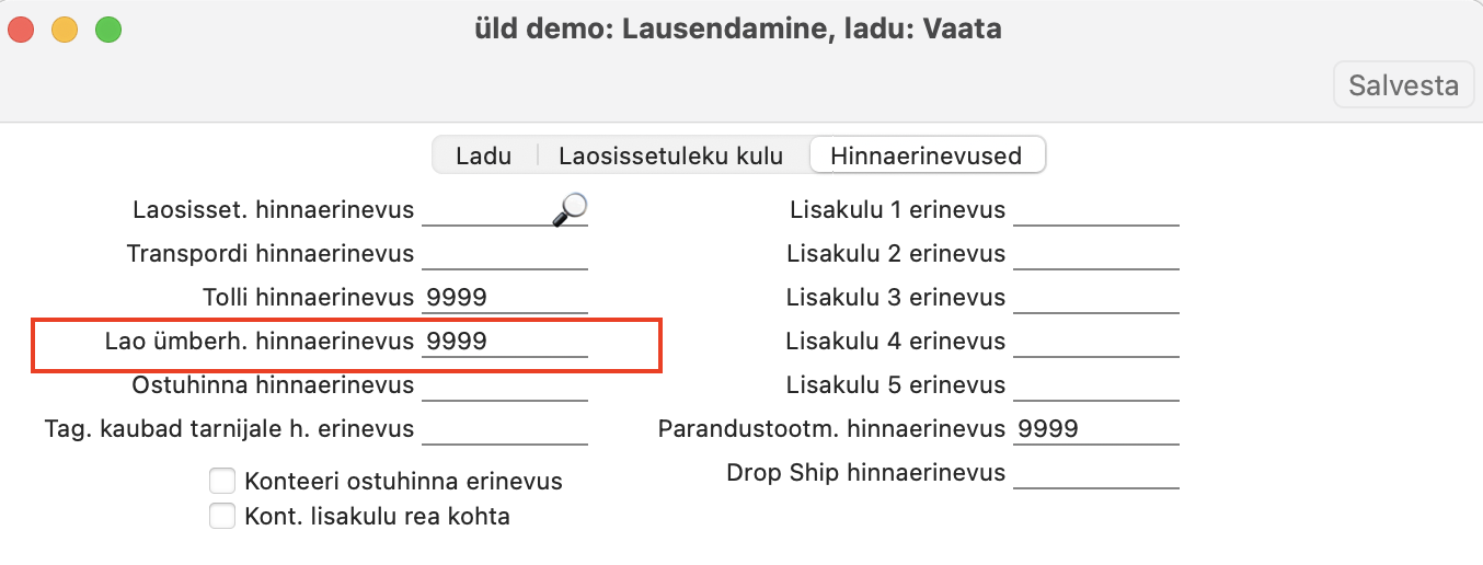 Moodul Logistika > Seadistused > “Lao ümberhindlused”.
