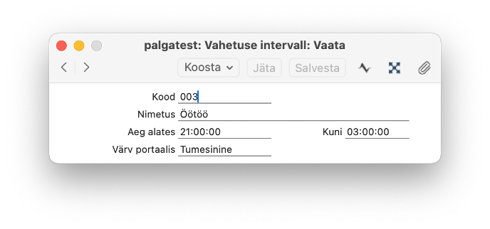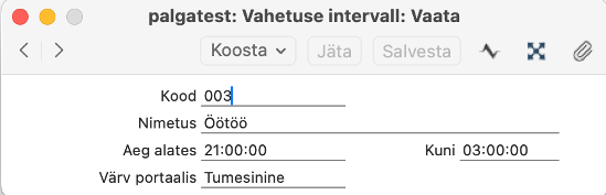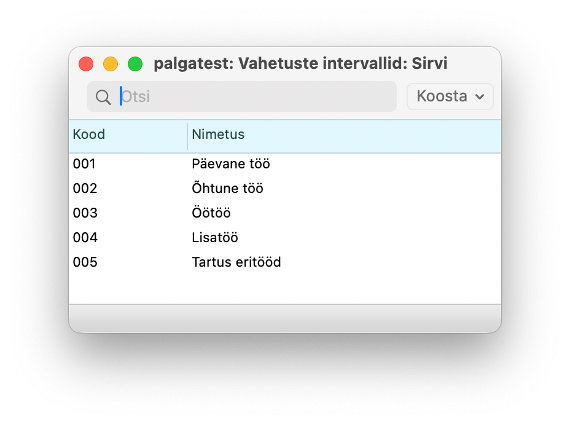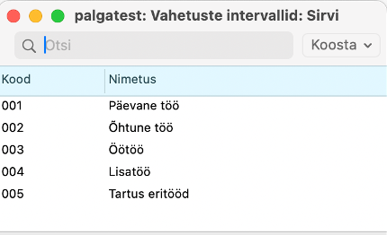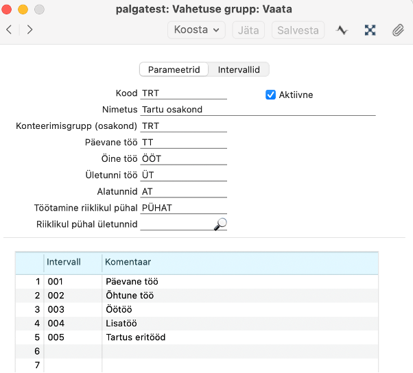2) Moodul Palk > Registrid > “Vahetuste intervallid”