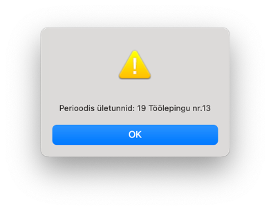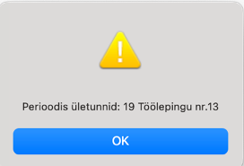 Kui Töölepingul on märgitud valik “Summeeritud tööaeg“, siis kaardi salvestamisel programm kontrollib töötaja perioodi normtunde ja kokku töötatud tunde ning hoiatab kui perioodis on üle- või alatunnid (ilmub teade “Perioodis ületunnid:… Töölepingu nr…“). Kui valik “Summeeritud tööaeg” märgitud ei ole, siis hoiatust ei kuvata ning tasu arvestatakse vaid tehtud tundide eest.