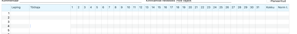 1-31 – siia saab valida iga päeva peale päises valitud “Vahetuse grupp” kaardile määratud intervalle;