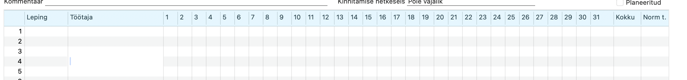 Norm kuu töötunnid – kalendrikuu normtunnid täisajaga töötamisel (täitub automaatselt perioodi valimisel);