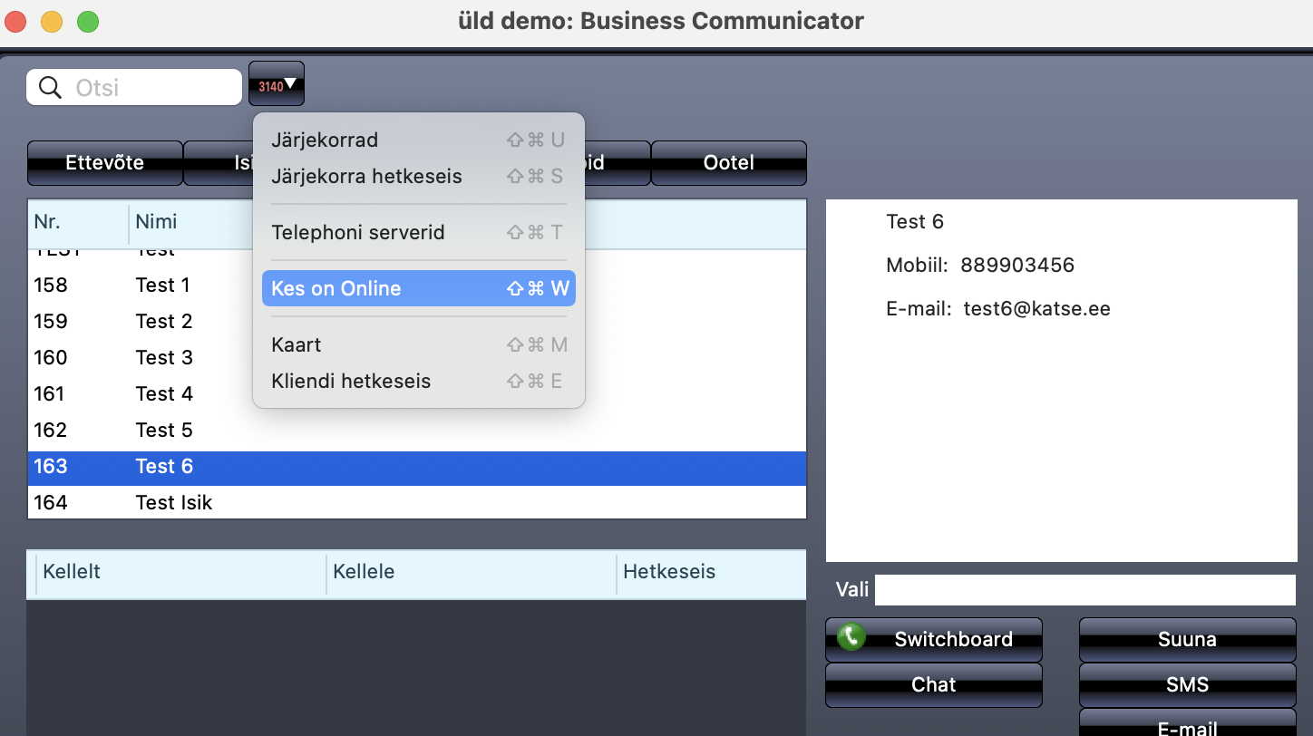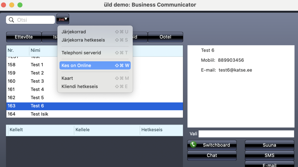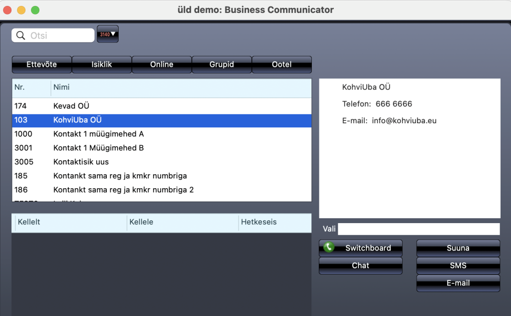 Funktsiooni kasutamiseks vajuta Põhiakna üleval ääres “telefoni” ikooniga nupule mille järel avaneb Business Communicator aken