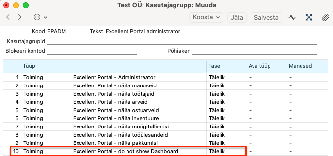 Toiming = “Excellent Portal – do not show Dashboard”.