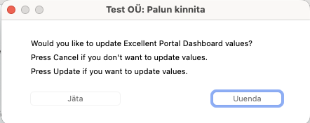 Kui kõik seaded on paigas, siis salvesta kaart. Ilmub teade“Kas soovite uuendada Excellent Portal Dashboard andmeid?”, vali “Uuenda“.