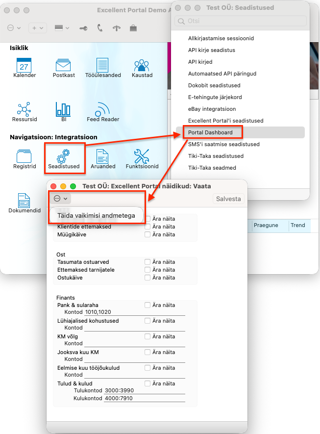 Kuidas seadistada näidikuid Excellent Portalis?