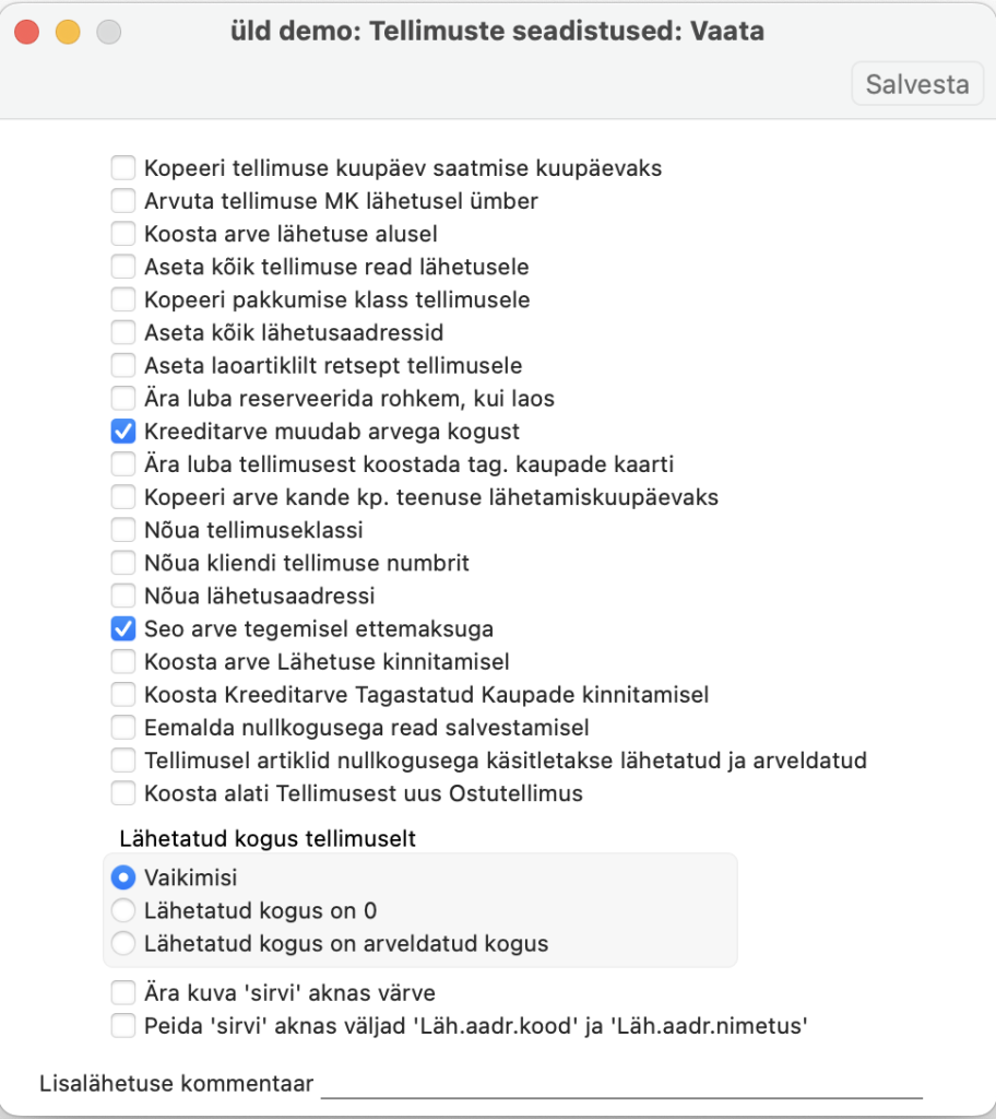 Vaikimisi – lähetusele tuleb lähetatud koguseks tellitud kogus.