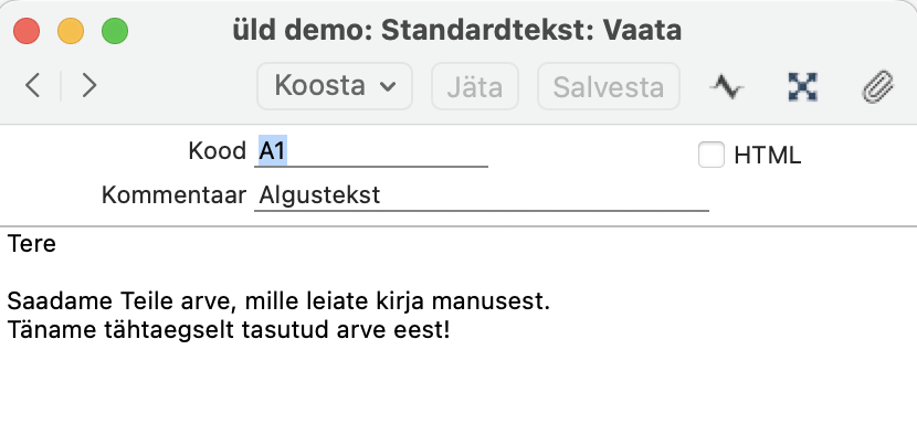 Selles registris saad registreerda Kliendikirjadel kasutatavad standard tekstid, mida tihti kasutad.