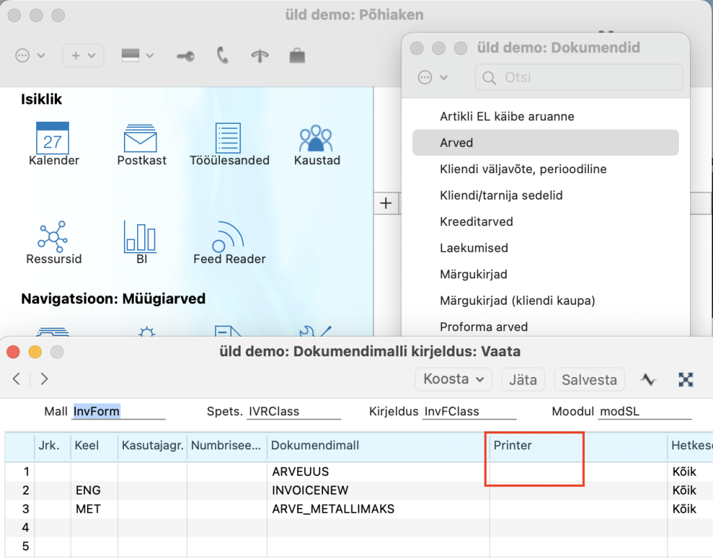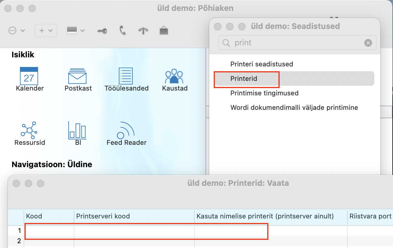 - Moodul Üldine > Seadistused >Printerid. Tühjenda seadistuses kõik read