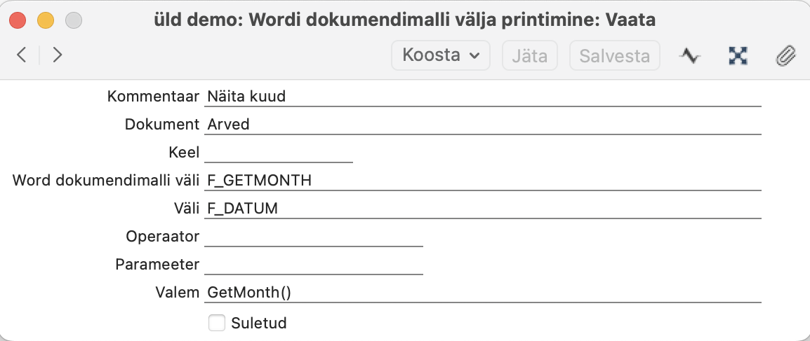 Seadistus „Wordi dokumendimallide väljade printimine“