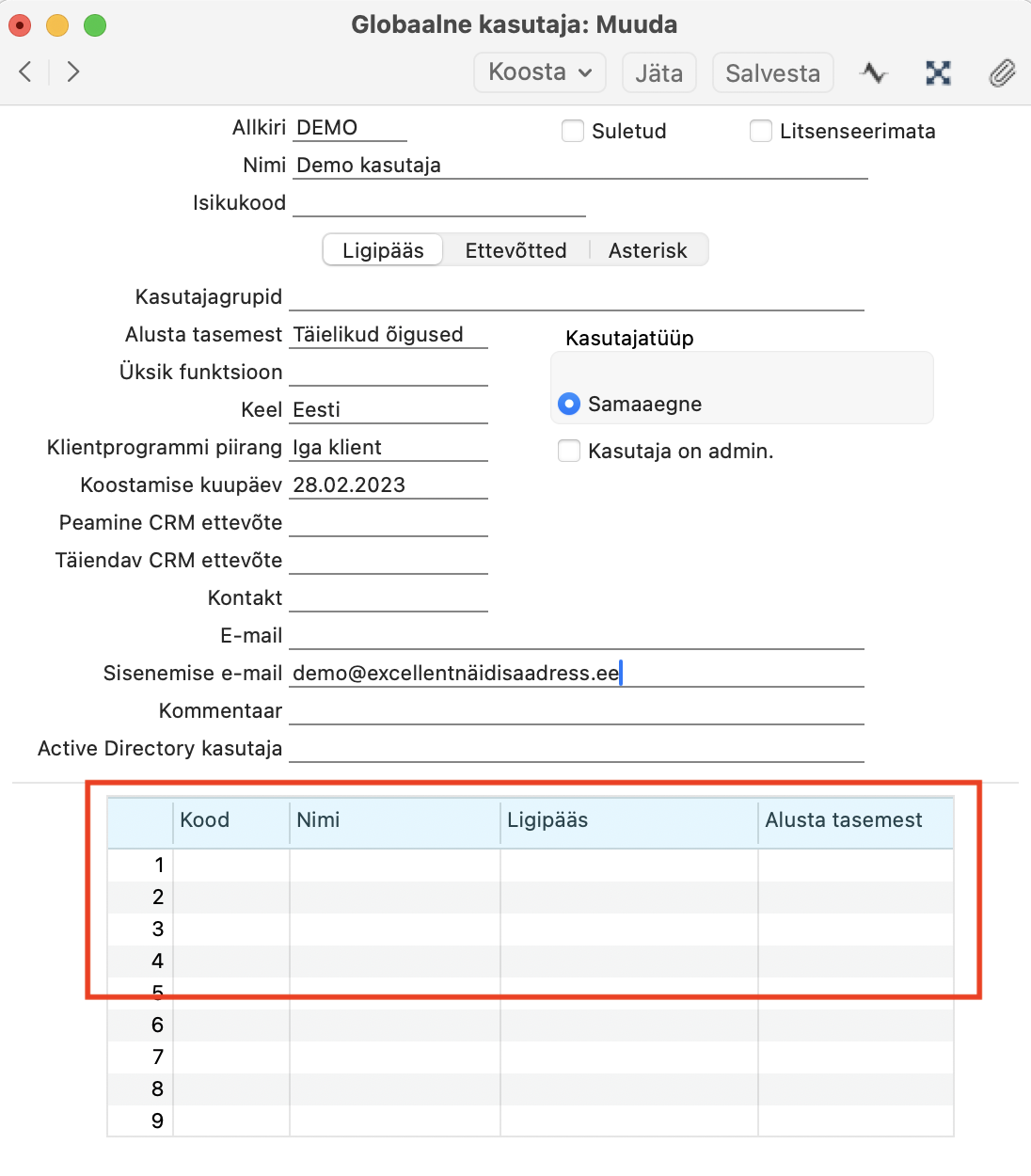 – Selleks sisene nimekirjas esimesse ettevõttesse, mine moodul Tehnika > Registrid > “Globaalsed kasutajad”.