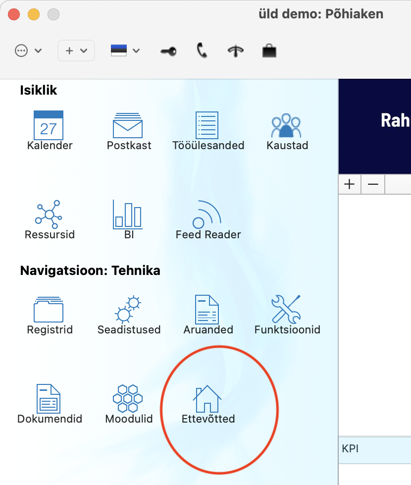 - Vali Põhiaknas ikoon “Ettevõted”