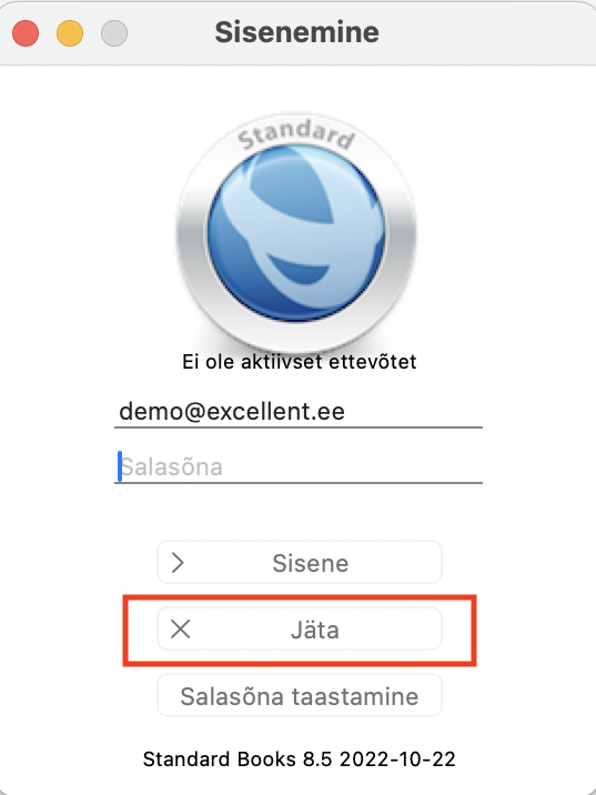 9. Käivita programm uuesti ning vali sisenemise aknas “Jäta“.