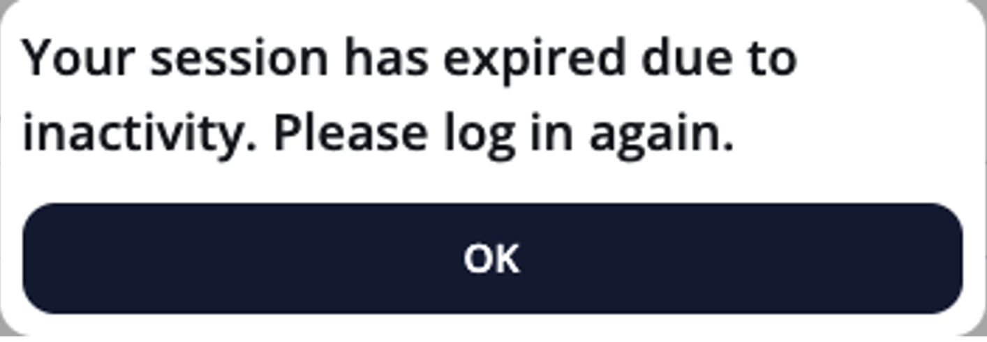 If the timer reaches zero and the user has not selected whether they want to continue using the Portal or log out, the system will log the user automatically out of Excellent Portal and display the corresponding message “Your session has expired due to inactivity. Please log in again.“: